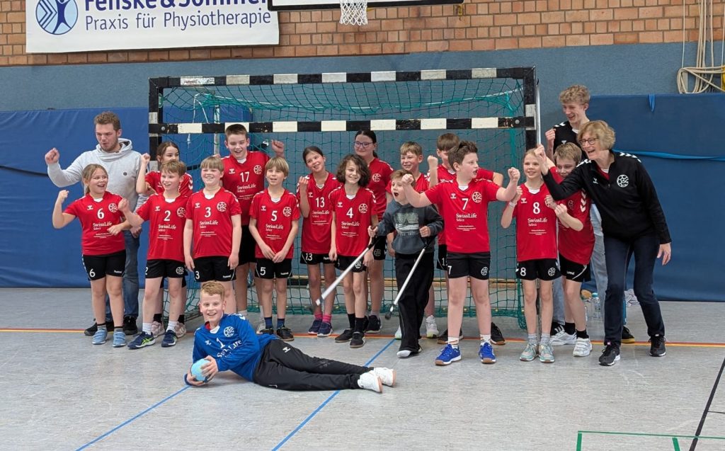 Riesenjubel herrschte nach dem letzten Handballspiel in der Sporthalle in Neuenkirchen, denn die gemischte E-Jugend sicherte sich in dieser Saison durch eine geschlossene Mannschaftsleistung und starken Teamgeist den Staffelsieg in der Handball Kreisklasse.