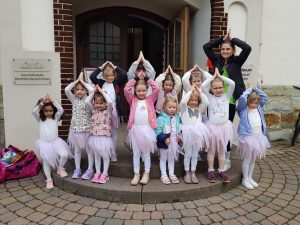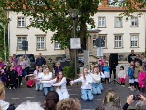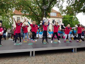 Auf der Bühne des Dorfplatzes legten die Floh-Hüpfer, die Springmäuse, die Disco- Bienchen, die Glitzer- Girls und die Hip Hop Gruppierung der Breitensportabteilung eine bunte Tanzeinlage aufs Parkett. Ob die Kleinsten mit 4 Jahren in Einhorn- Kostümierung, die Ältesten im einheitlichen HipHop Outfit oder einfach glitzernd und in einem farbenfrohen Gesamtbild. Die Kinder trotzten dem Wetter und heizten mit Waschpuschel, Chiffontüchern und Flatterbändern die Bühne ordentlich ein. Die knapp 60minütige Show, moderiert von Birgit Heimbucher, begeisterte nicht nur die zahlreichen Besucher, sondern auch die Übungsleiterinnen Sabrina Andersen, Sophia Gibert, Rebekka Peter und Kira Fleiter und ihre Gruppenhelferinnen Ida Gieseker, Andrea Gibert und Lara- Marie Meißner.
